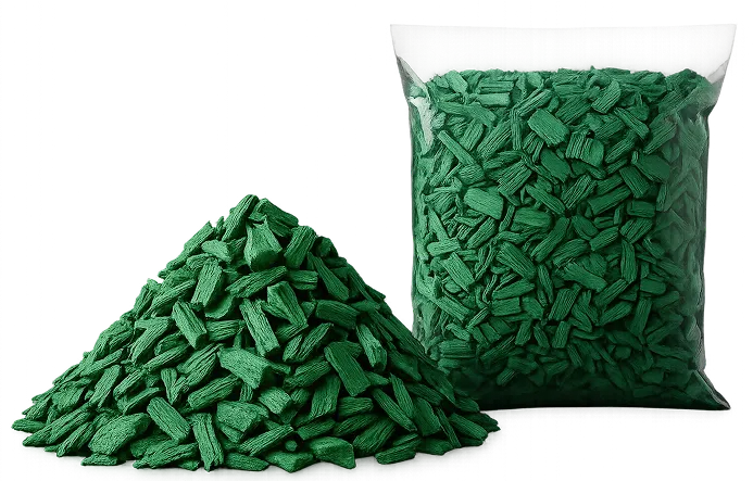 Декоративная щепа – это вид посыпки, который применяют для оформления ландшафта. Декоративная щепа абсолютно безопасна, для ее изготовления используется только натуральная древесина и красители из органических веществ, которые не наносят вред растениям и животным.